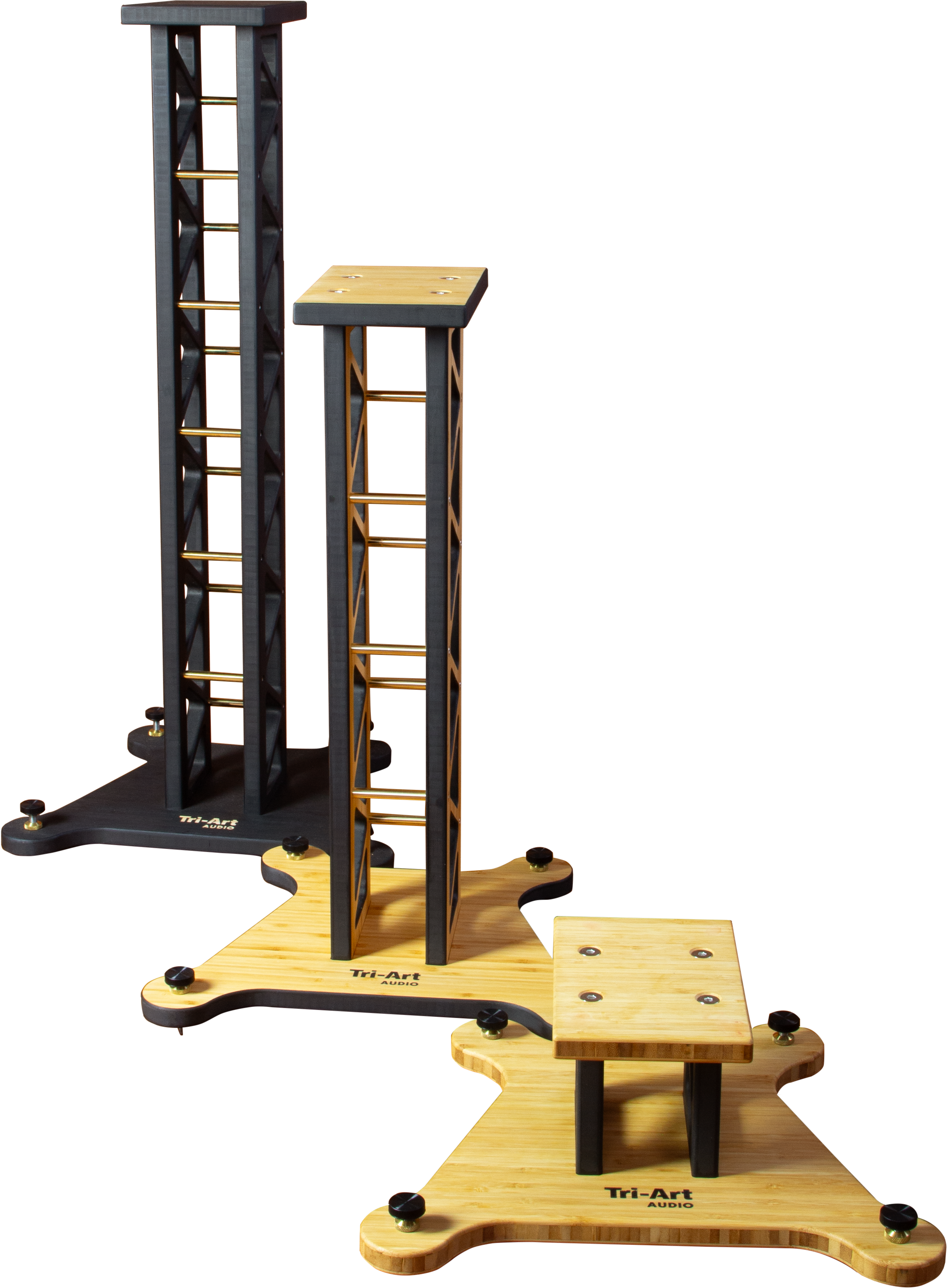These stands provide a perfect match, but not limited to, our Mini Monitor series . Available in 24 and 33 inches. These high-quality audio works of art are made entirely by Tri-Art Audio 's wood shop and fabrication. Optional finishes available.