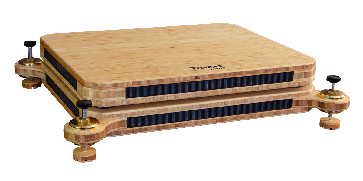 Evolving from our dual‑plinth TA‑2 turntable design, the double‑layer configuration takes isolation performance even further. The upper and lower plinths are decoupled using sorbothane pucks.